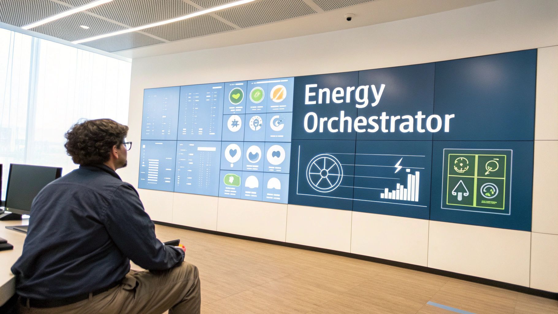 The software is what turns a simple collection of energy assets into a cohesive, intelligent system. It moves beyond just monitoring to active, predictive control, managing resources to hit specific goals like cutting costs or carbon emissions.