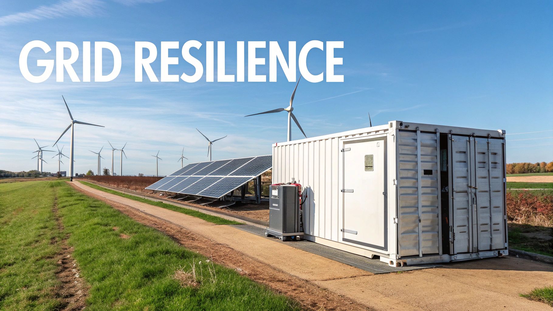 Think of a Battery Energy Storage System (BESS) as a financial savings account but for electricity. It’s a simple concept: you capture energy when it’s plentiful and cheap—like on a windy or sunny day—and save it for when you need it most. This simple act is creating a much more resilient and flexible UK energy grid.