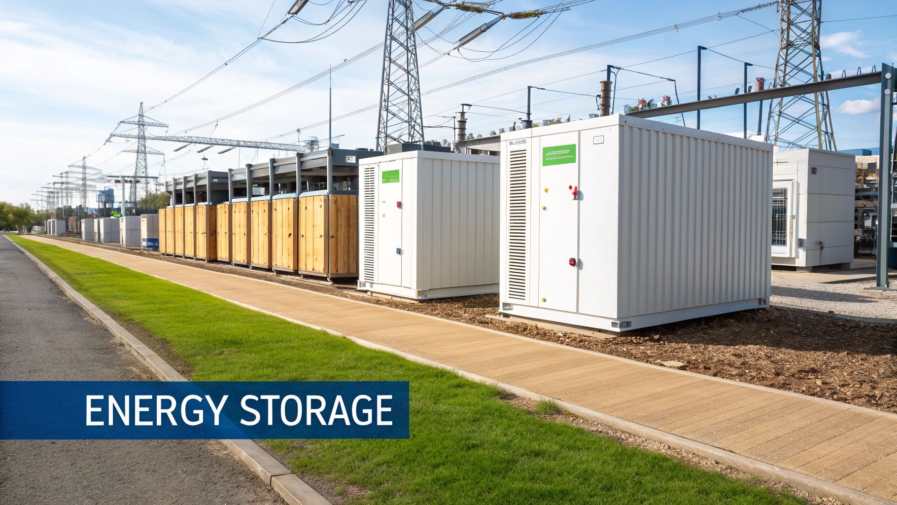 - Grid-Scale Batteries: These large installations soak up excess energy, stopping the grid from overloading when renewable output is high. They then release that power during peak demand, which helps stabilise prices and reduces our reliance on fossil fuel "peaker" plants.