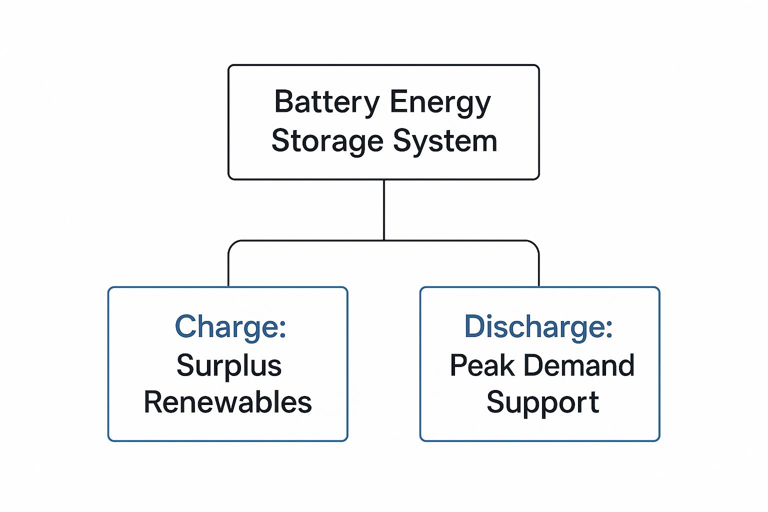In simple terms, a battery energy storage system is a technology that captures energy from various sources, converts it from electrical to chemical form and holds onto it for later. When it's needed, the process reverses, sending electricity back to the grid or directly to facilities like rapid EV charging stations. This function is fundamental to the modern UK energy network.