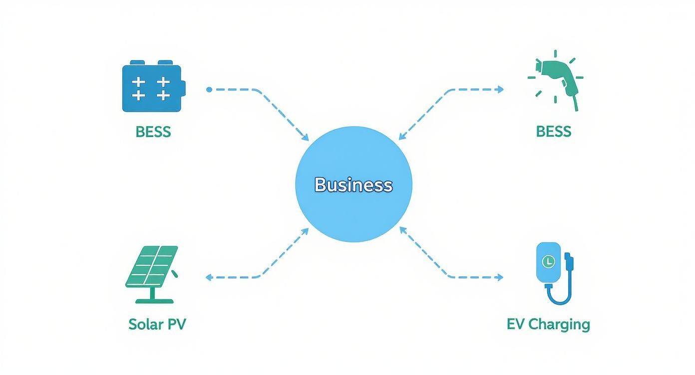 This diagram shows the core relationship between your business operations and these key energy assets.