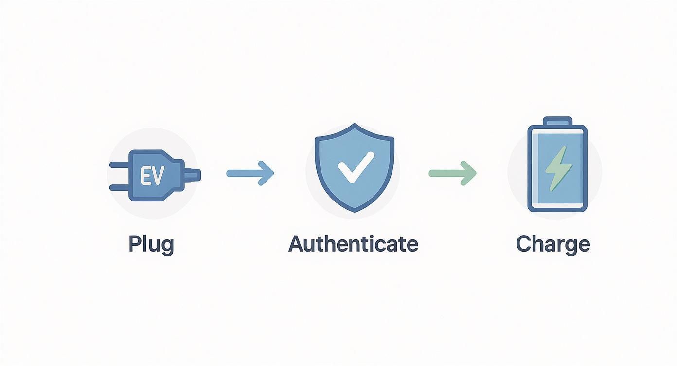 The whole process is a massive improvement on the old way of doing things. It's a single, fluid action that transforms the public charging experience from a chore into a seamless interaction. This simplicity is a true game-changer, making EV ownership far more practical and appealing for everyone.