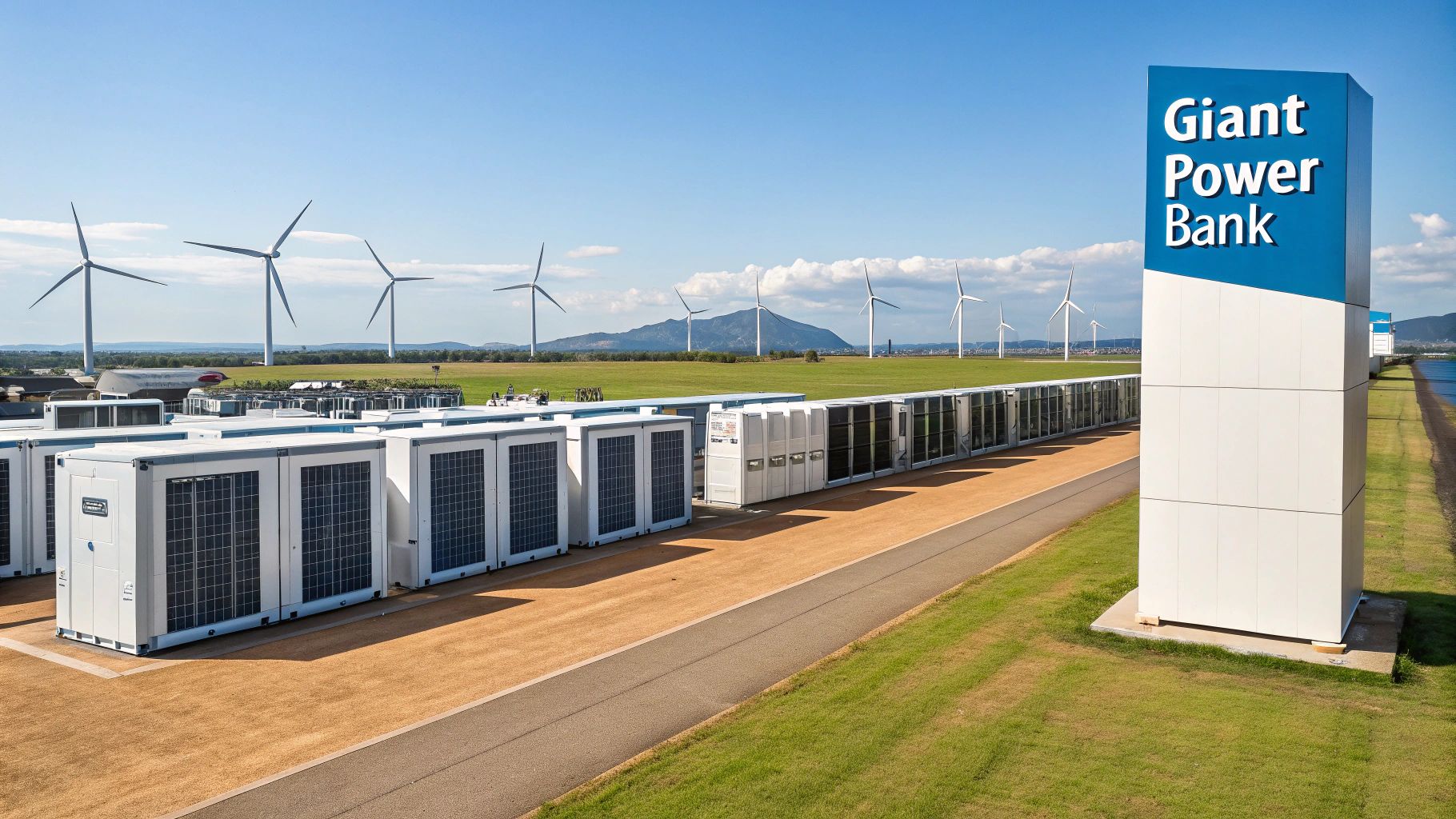Think of a battery energy storage system (BESS) as a huge, rechargeable power bank but one designed to support the entire UK national grid. It’s a beautifully simple concept: capture electricity when it’s plentiful and cheap—like on a fiercely windy or brilliantly sunny day—and save it for when demand is high or renewables are not generating. This technology is quickly becoming the lynchpin for balancing the UK’s power supply and making a clean energy future a reality.