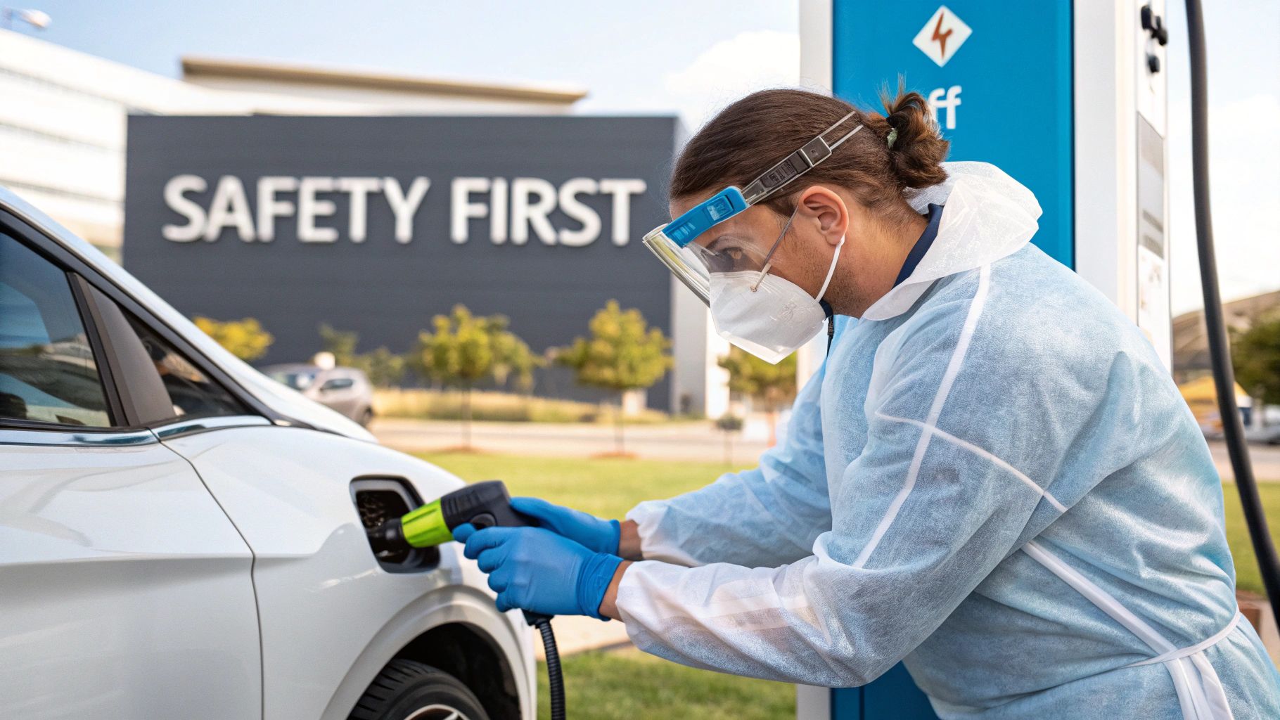 Beyond these general hazards, technicians must also adhere to strict Electrical Safety Protocols to ensure safe handling of all high-voltage components. For a deeper dive into the components that make up these systems, our guide to Electric Vehicle Supply Equipment offers a detailed breakdown.