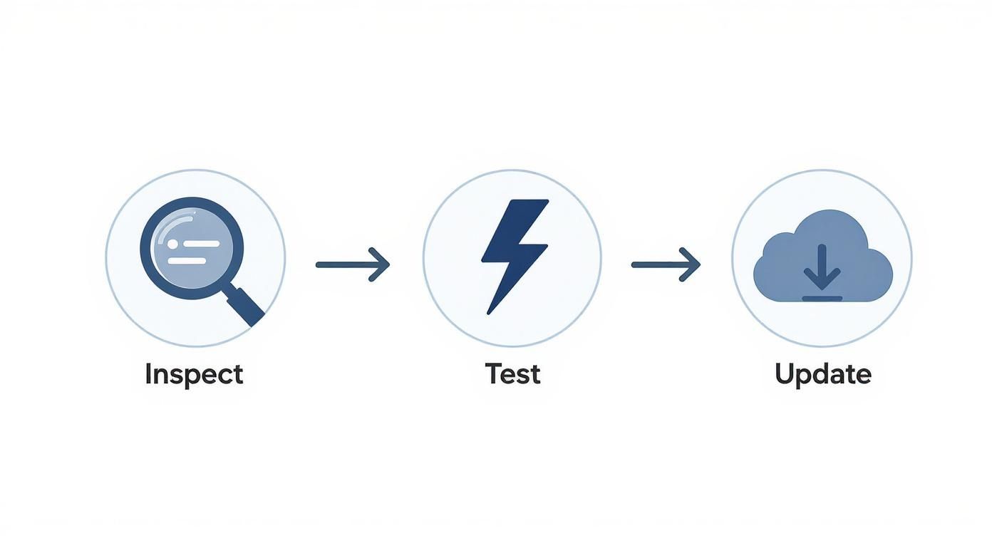 As you can see, it’s a constant cycle: inspect the hardware, test its performance and update the software. This loop is what keeps the unit safe, efficient and secure.