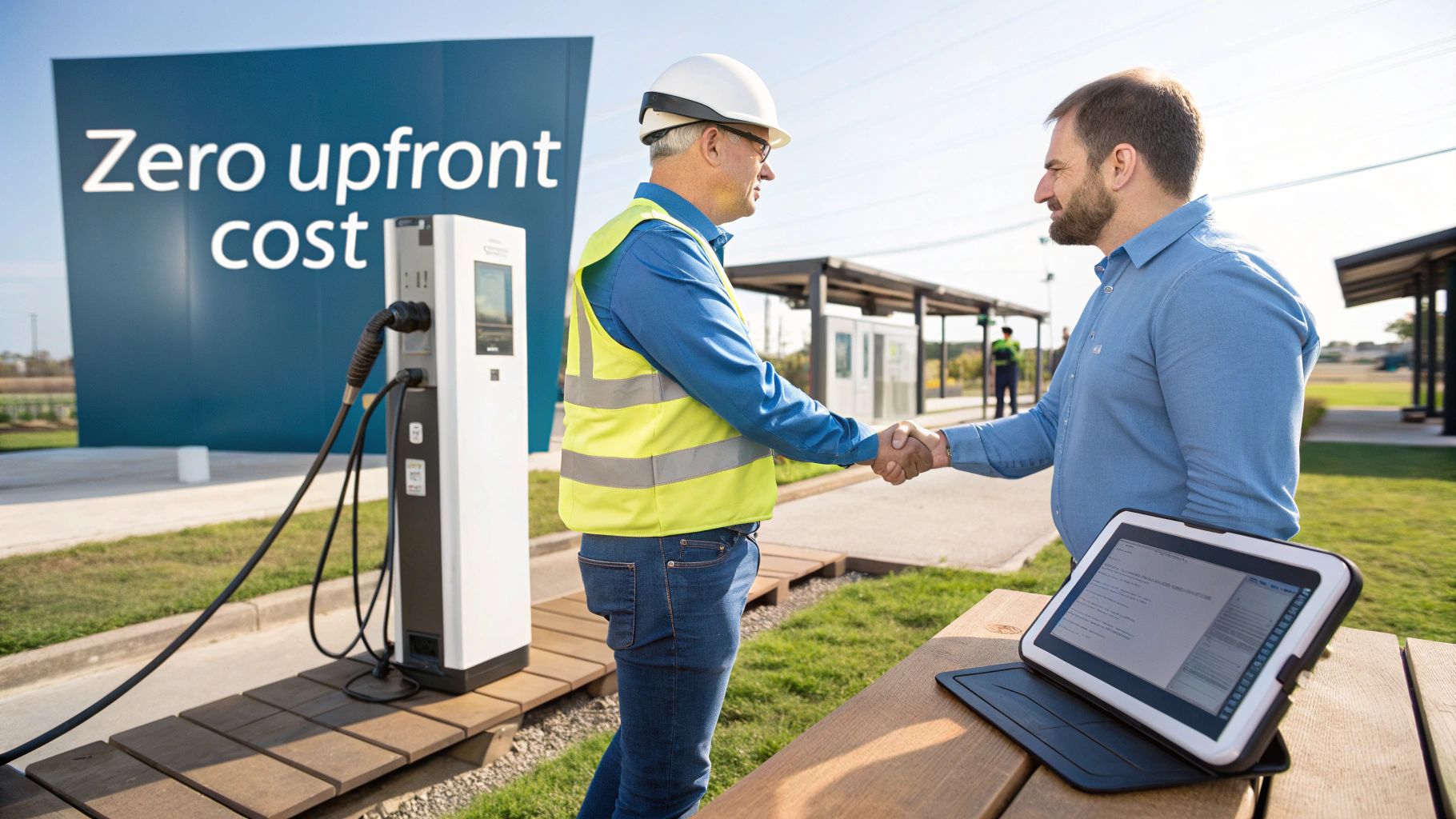 These models work by shifting the financial heavy lifting from you, the site owner, to a specialist charge point operator (CPO). Instead of buying the assets yourself, you effectively partner with an expert who funds, installs and manages the whole operation for you. It’s a powerful way forward for businesses that want the benefits of EV charging—like attracting more customers and opening up a new revenue stream—without taking on all the capital risk.