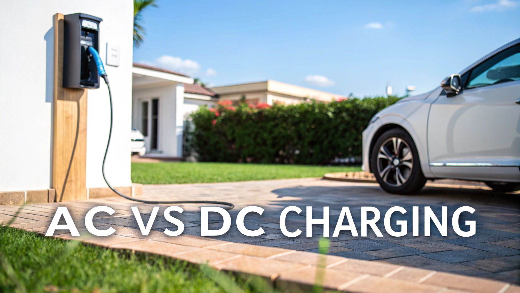 The main difference comes down to how power actually gets into the vehicle's battery. At its heart, the national grid supplies Alternating Current (AC), but every single EV battery stores its energy as Direct Current (DC). This simple fact is why we have two distinct types of charging infrastructure and knowing the difference is vital for matching the right hardware to your operational needs.