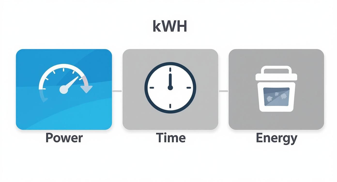 Let us cut through the jargon with a simple analogy. Picture a running tap. The speed at which water flows out is like power, measured in kilowatts (kW). The total amount of water you collect in a bucket over an hour is the energy consumed. That bucketful of water represents one kilowatt-hour (kWh).